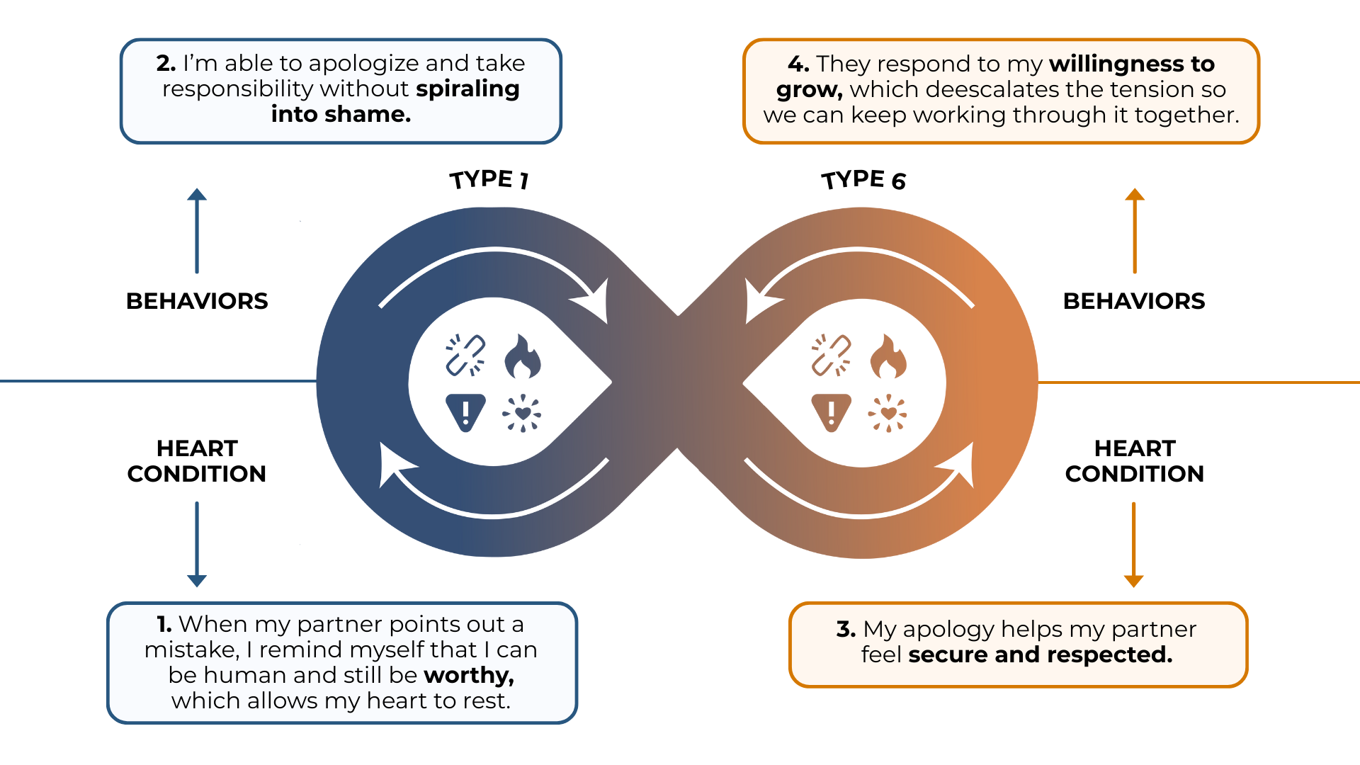 - Criticism Sensitivity: Type 1’s tendency to correct can feel judgmental to Type 6, while Type 6’s doubt can feel like mistrust to a principled Type 1.