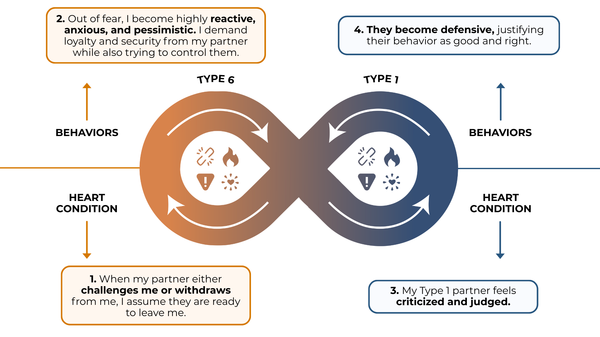 - Both Feeling Misunderstood: Type 1 seeks improvement, while Type 6 craves security. But without an emotional connection, both can feel unseen.