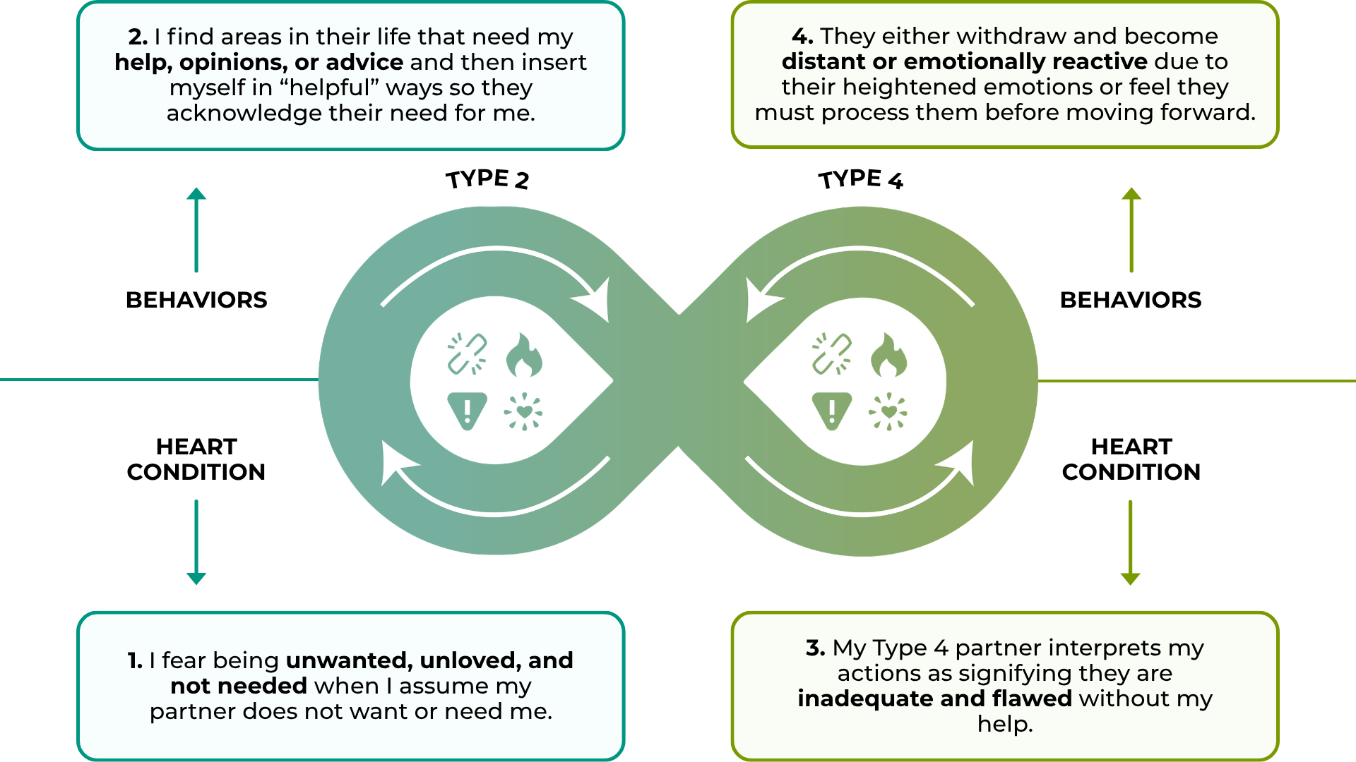 - Misreading Motives: 2's may interpret a 4’s need for space as rejection, and 4's may see a 2’s helpfulness as intrusive or inauthentic.