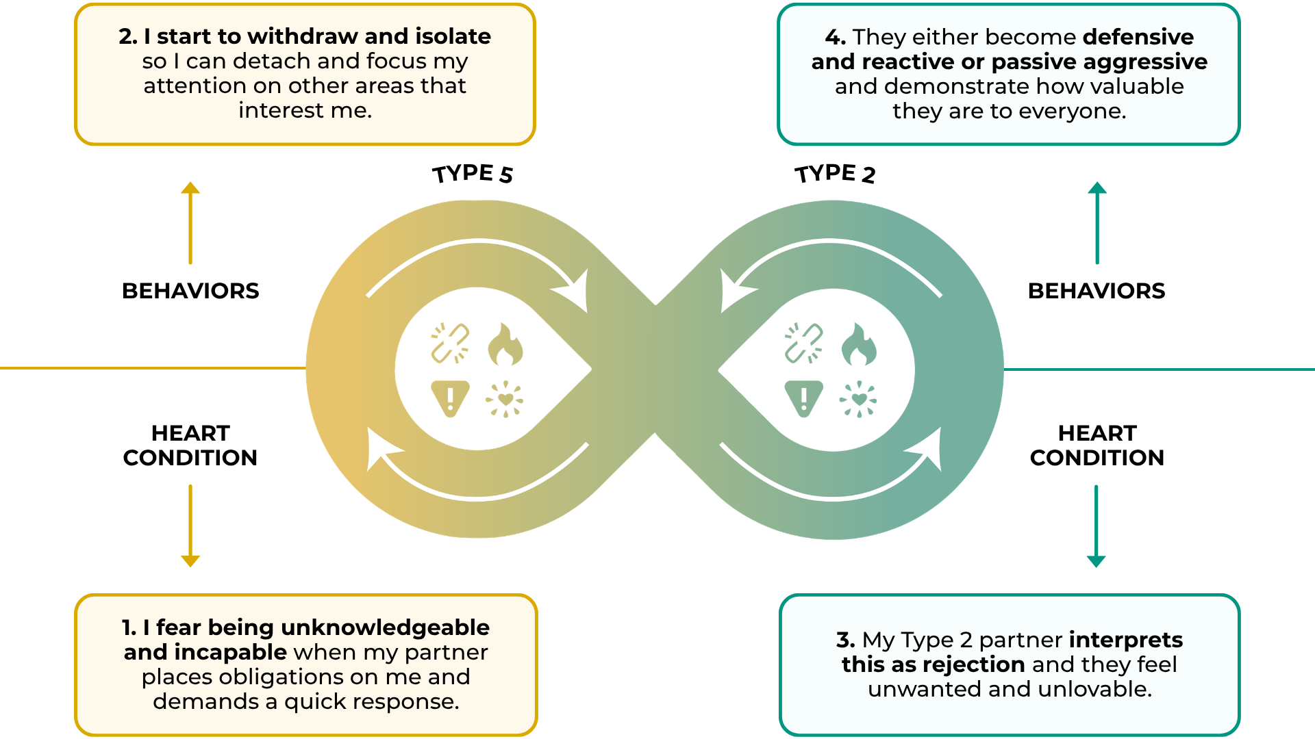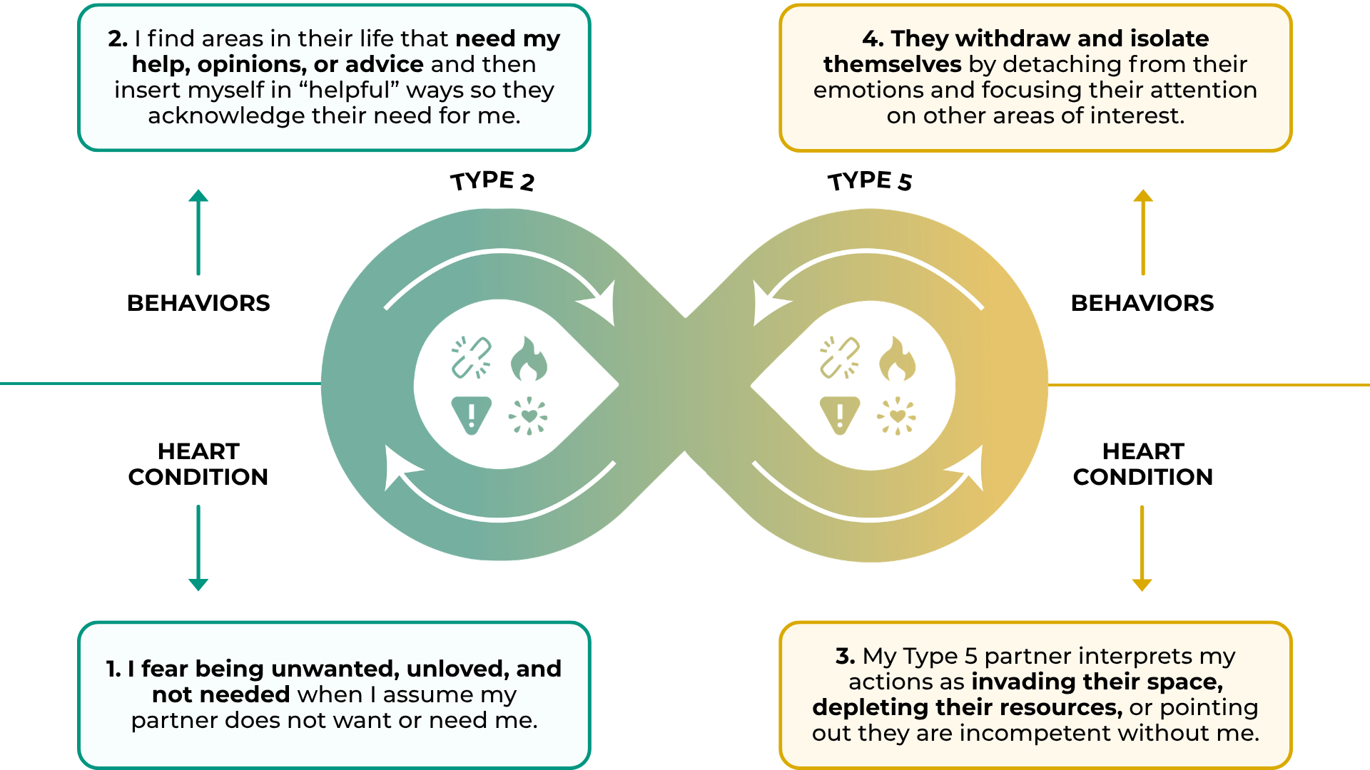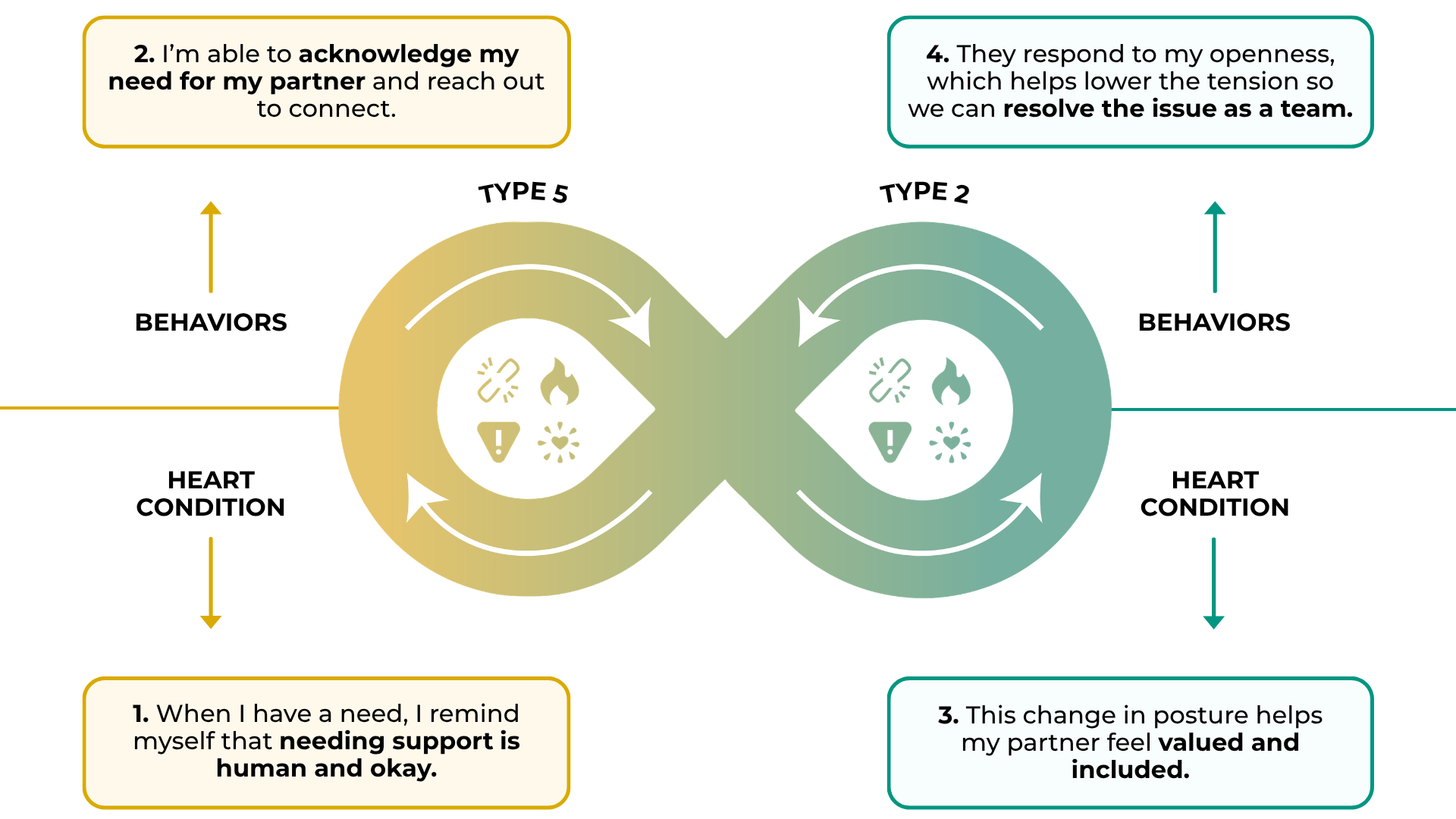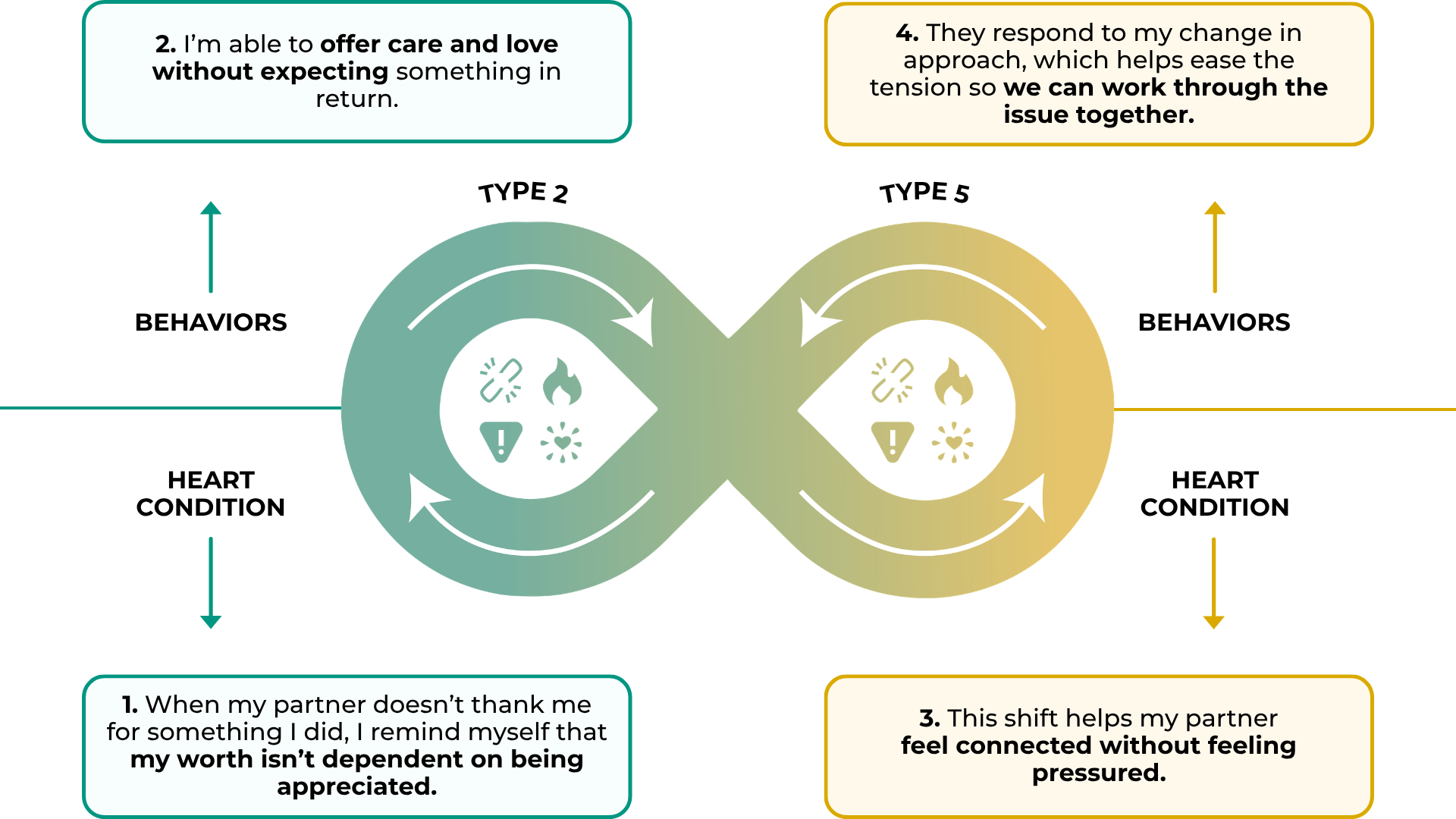 - Recognize when giving feels intrusive or distance feels protective. Type 2's may give in hopes of feeling closer, while Type 5's may pull away to feel safe. Naming these instincts helps both partners respond with intention rather than reactivity.