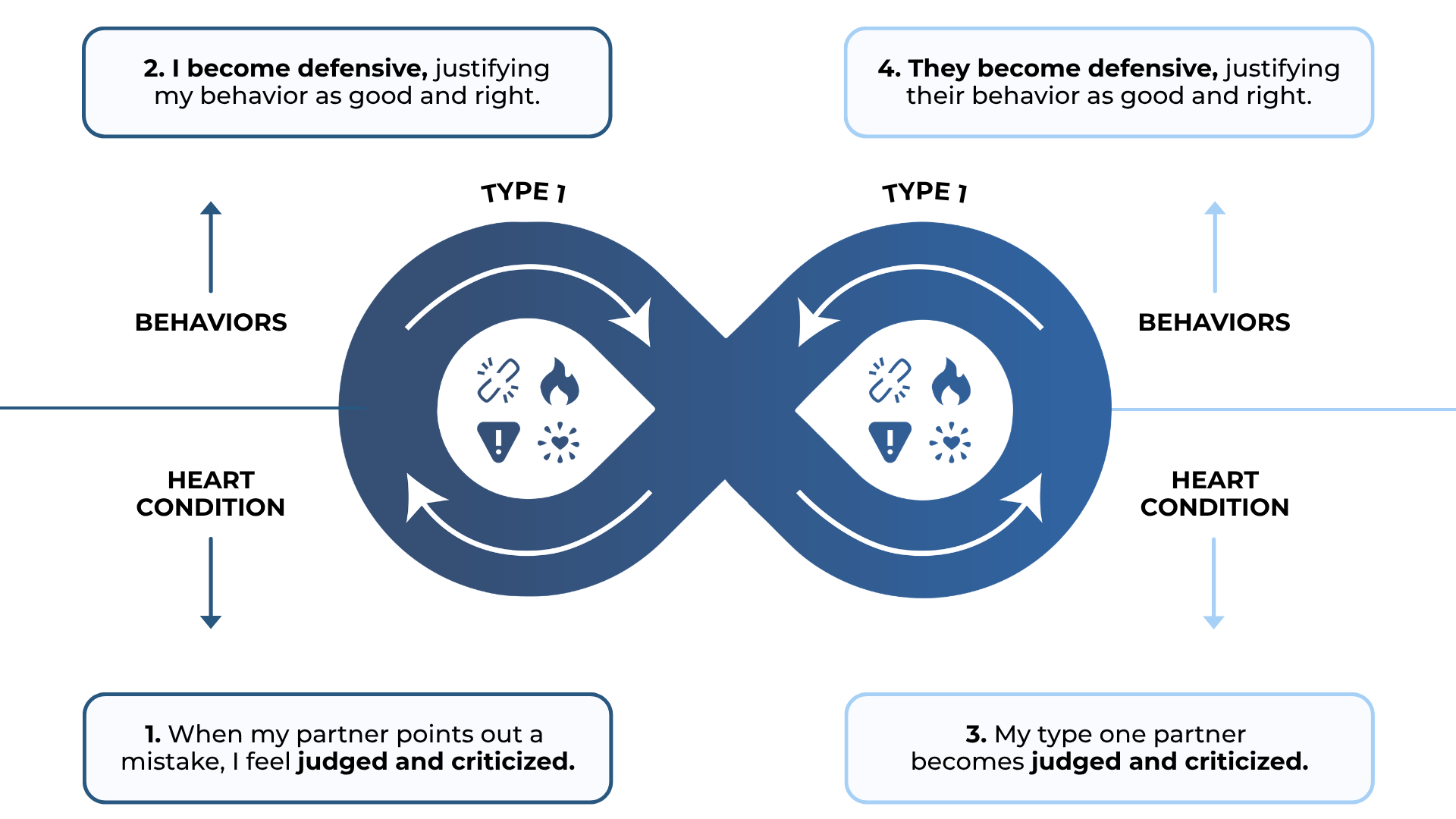 - A cycle of critique and defensiveness, where both partners feel like they are under constant evaluation.