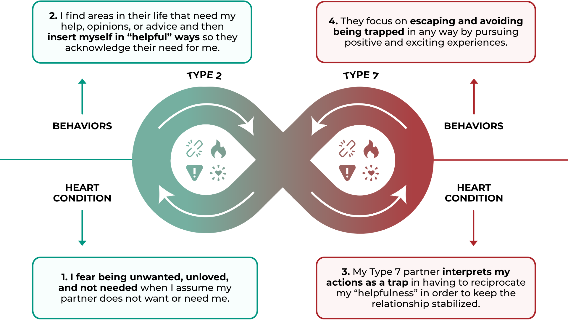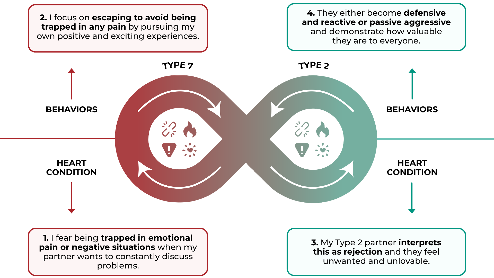 This unconscious pattern—clinging through giving (2) and escaping through distraction (7)—can leave both partners feeling ungrounded, misunderstood, or emotionally distant.
