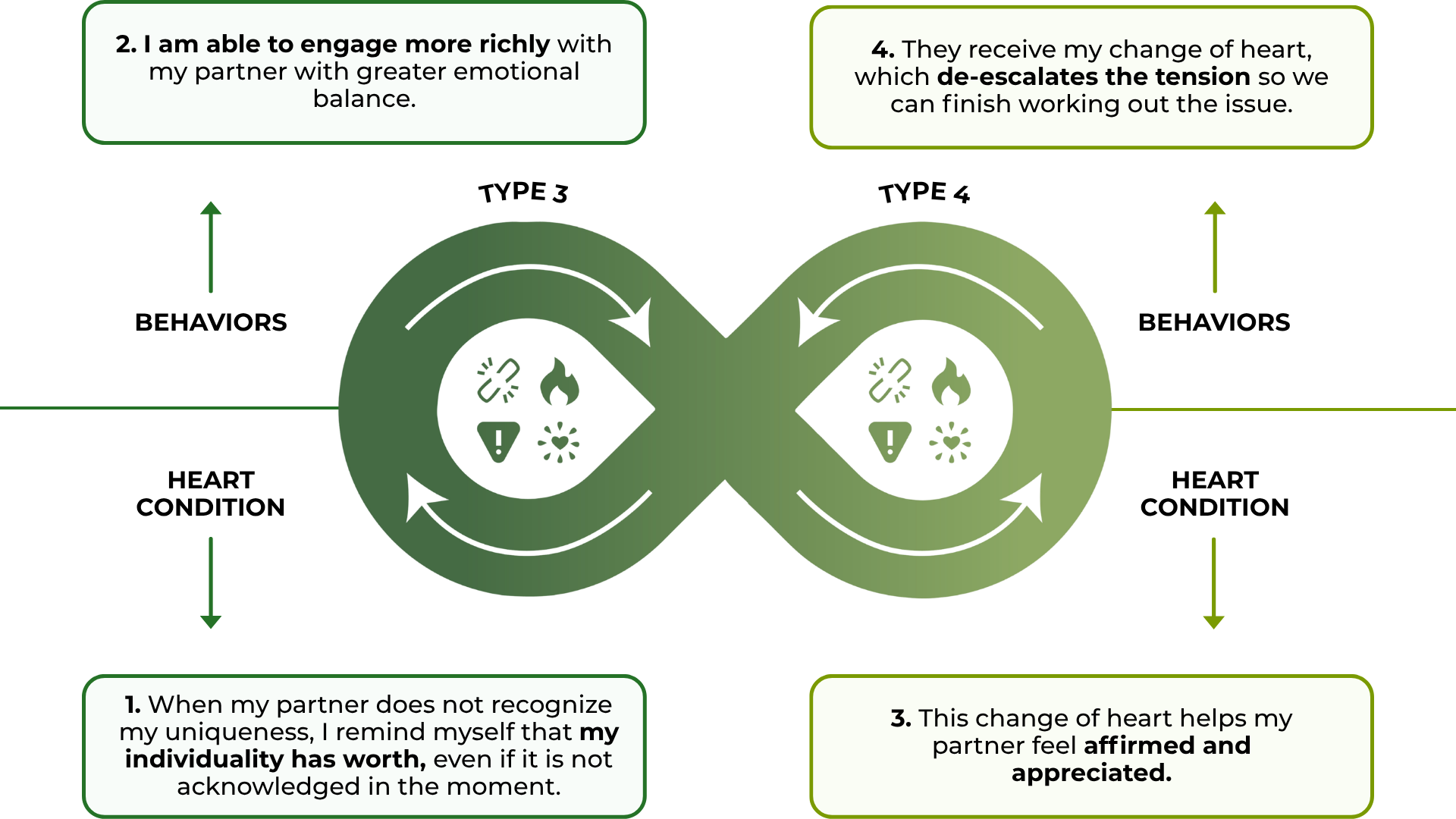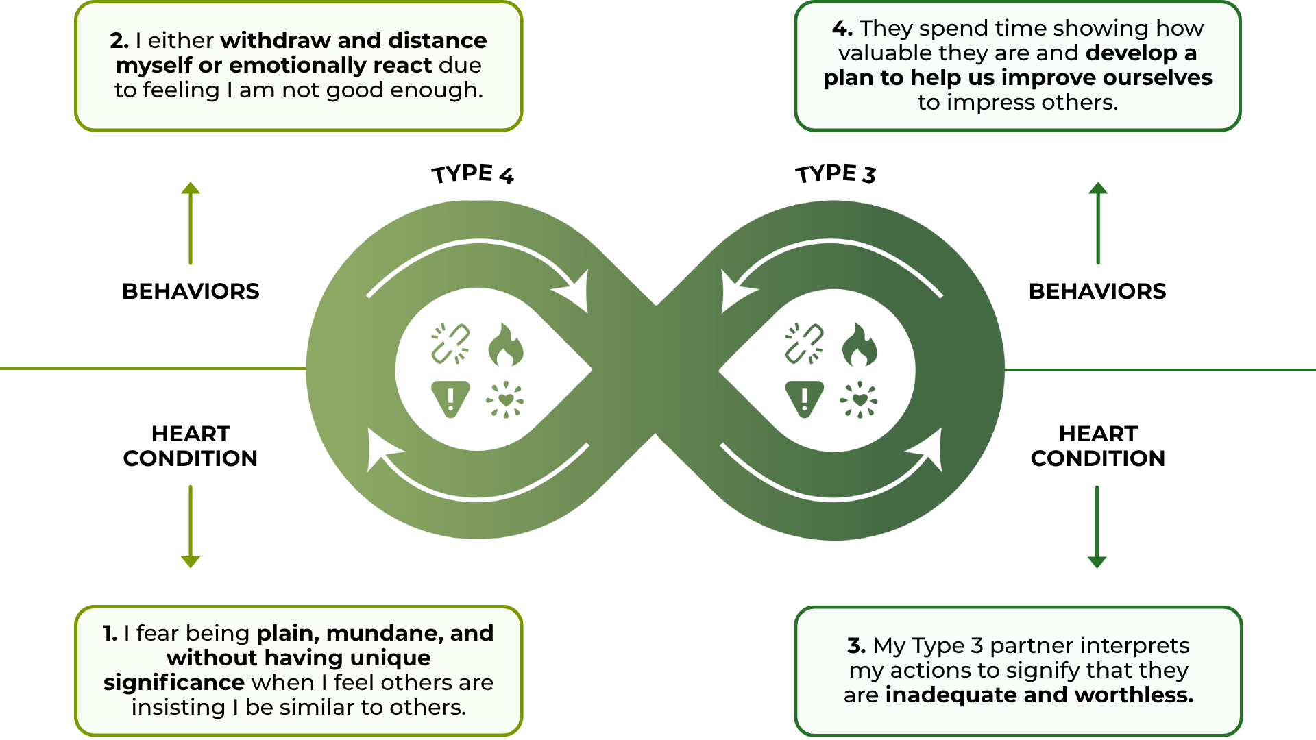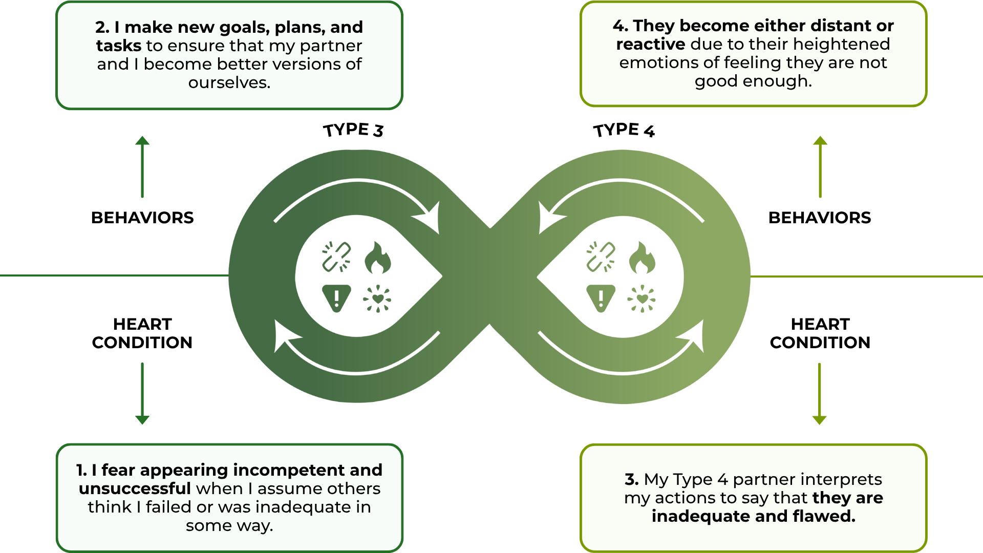 - Type 3 may prioritize goals or external validation, unintentionally causing Type 4 to feel emotionally dismissed.