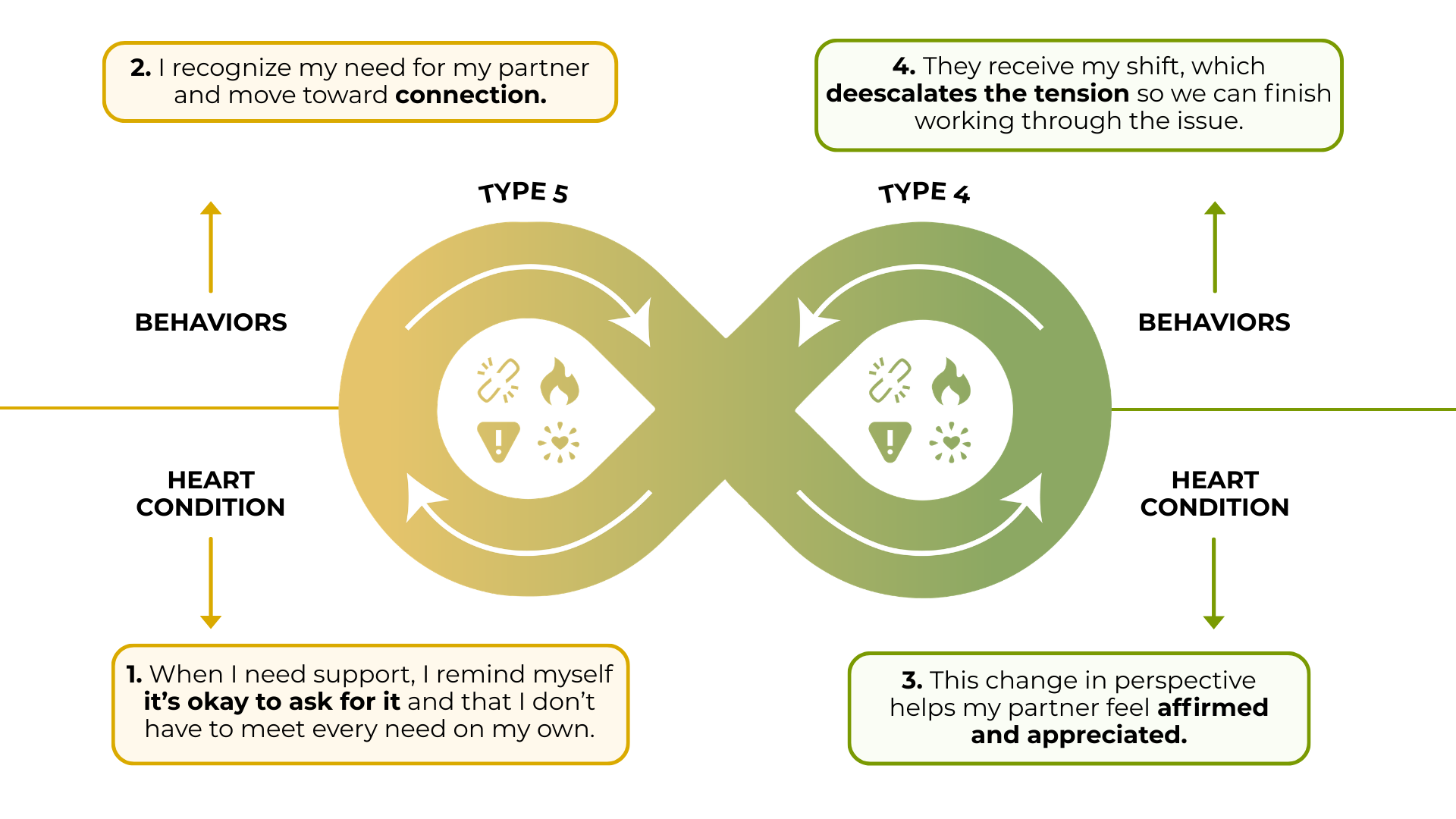 - Name emotions clearly: Type 4's can express feelings without expecting the Type 5 to fix them, and Type 5's can acknowledge emotions even when they don’t fully understand them.