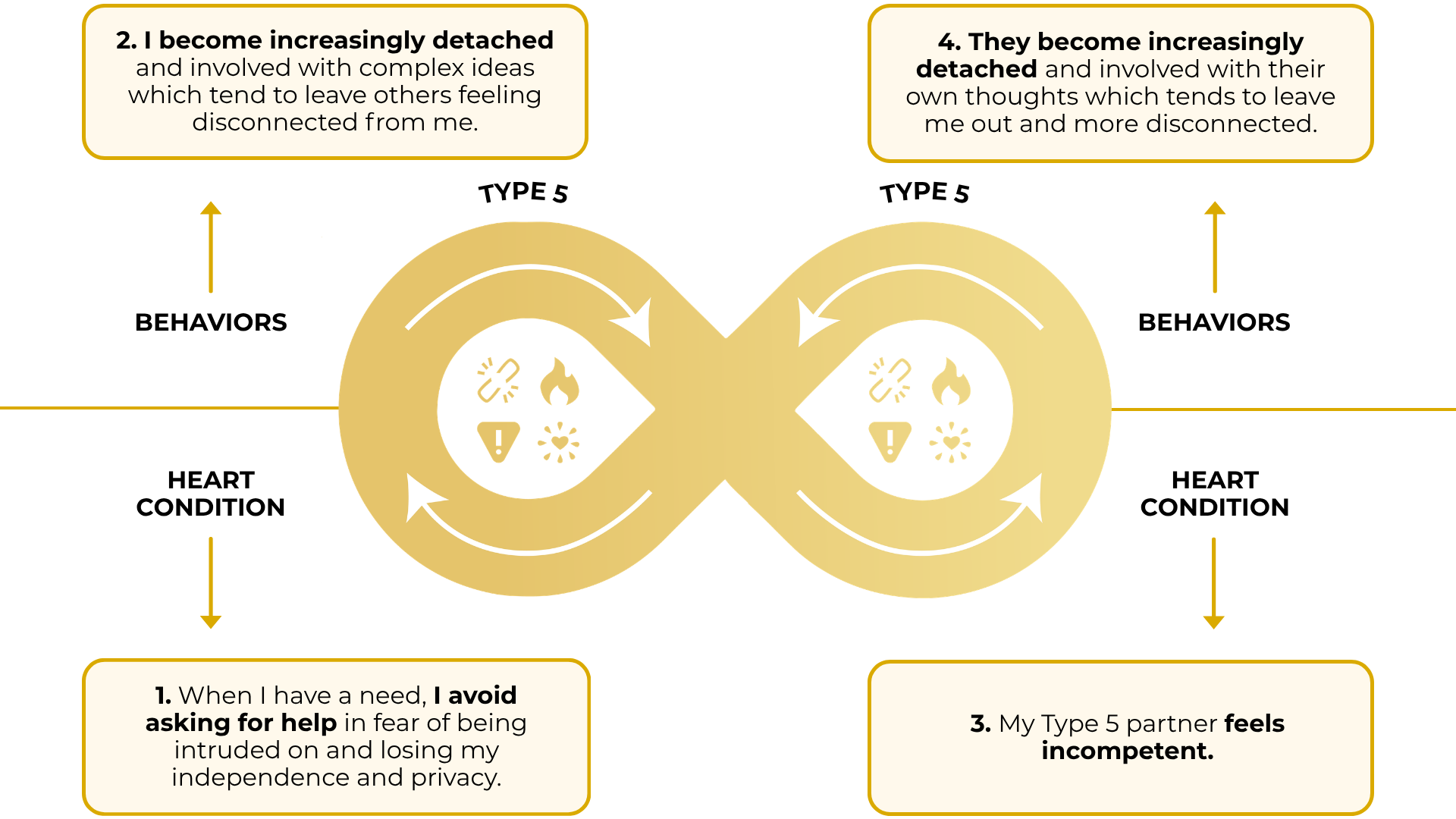 But when we become more aligned with who we are and grow in self-awareness, the dynamic shifts. Here is an example of an aligned dance for Type 5 and Type 5:
