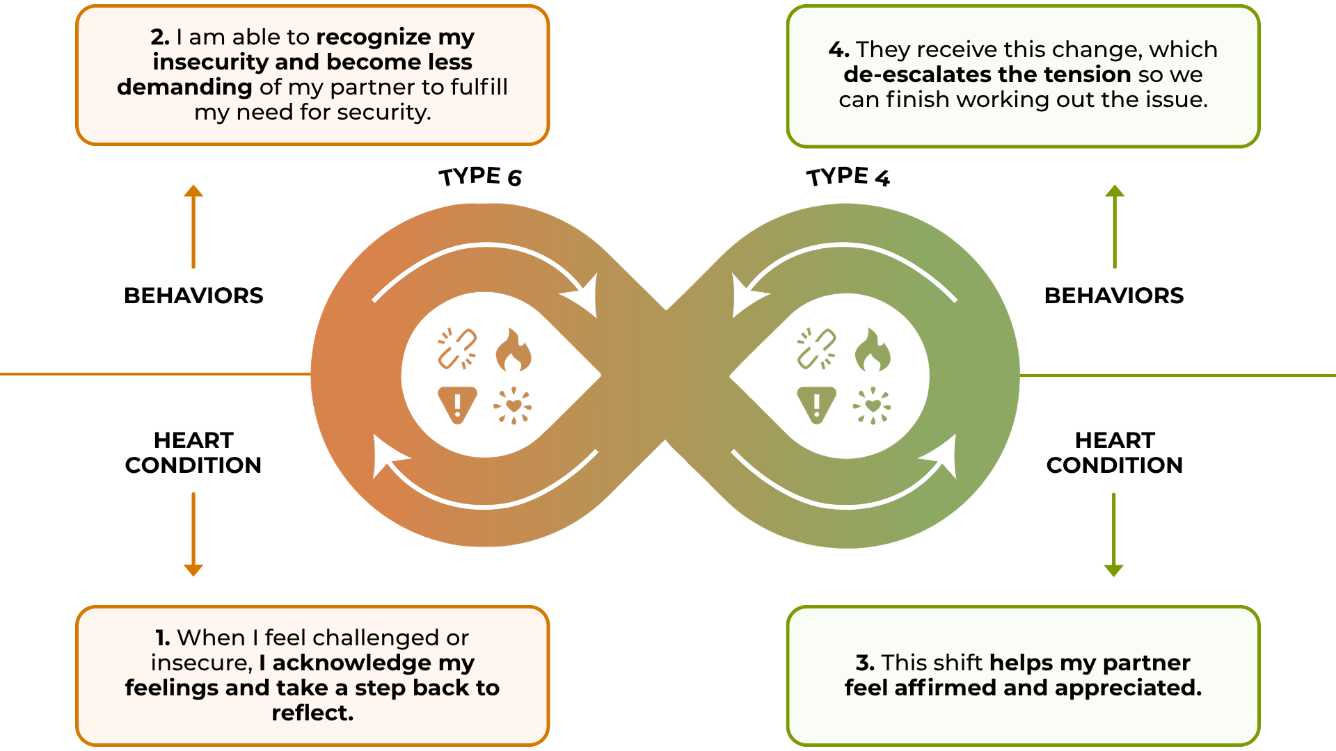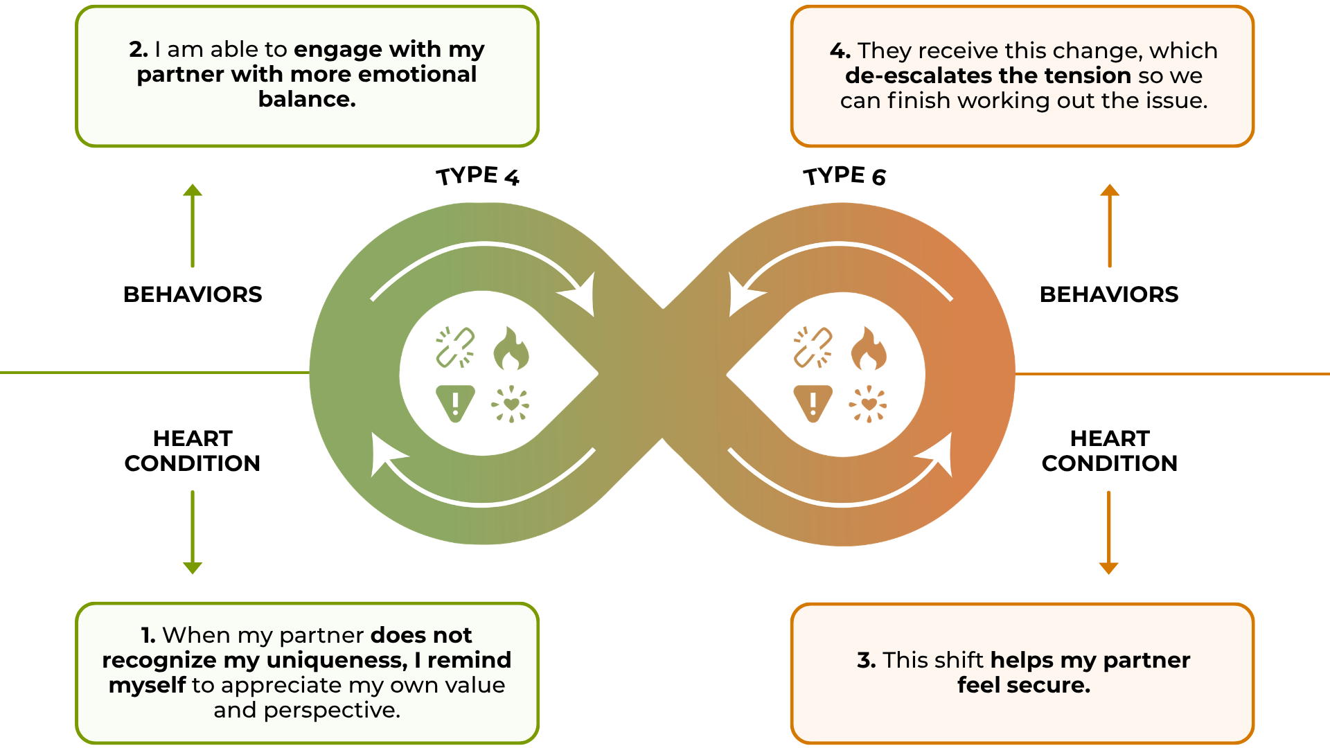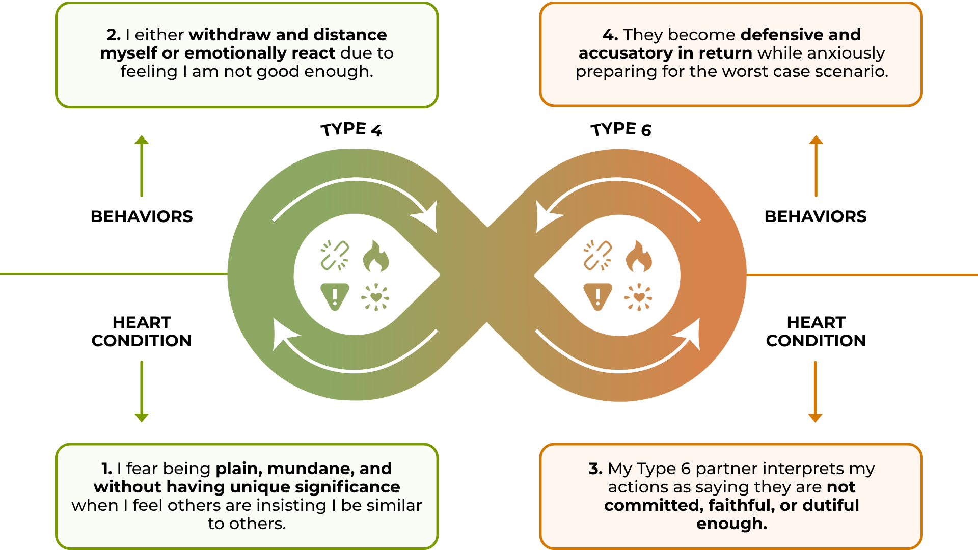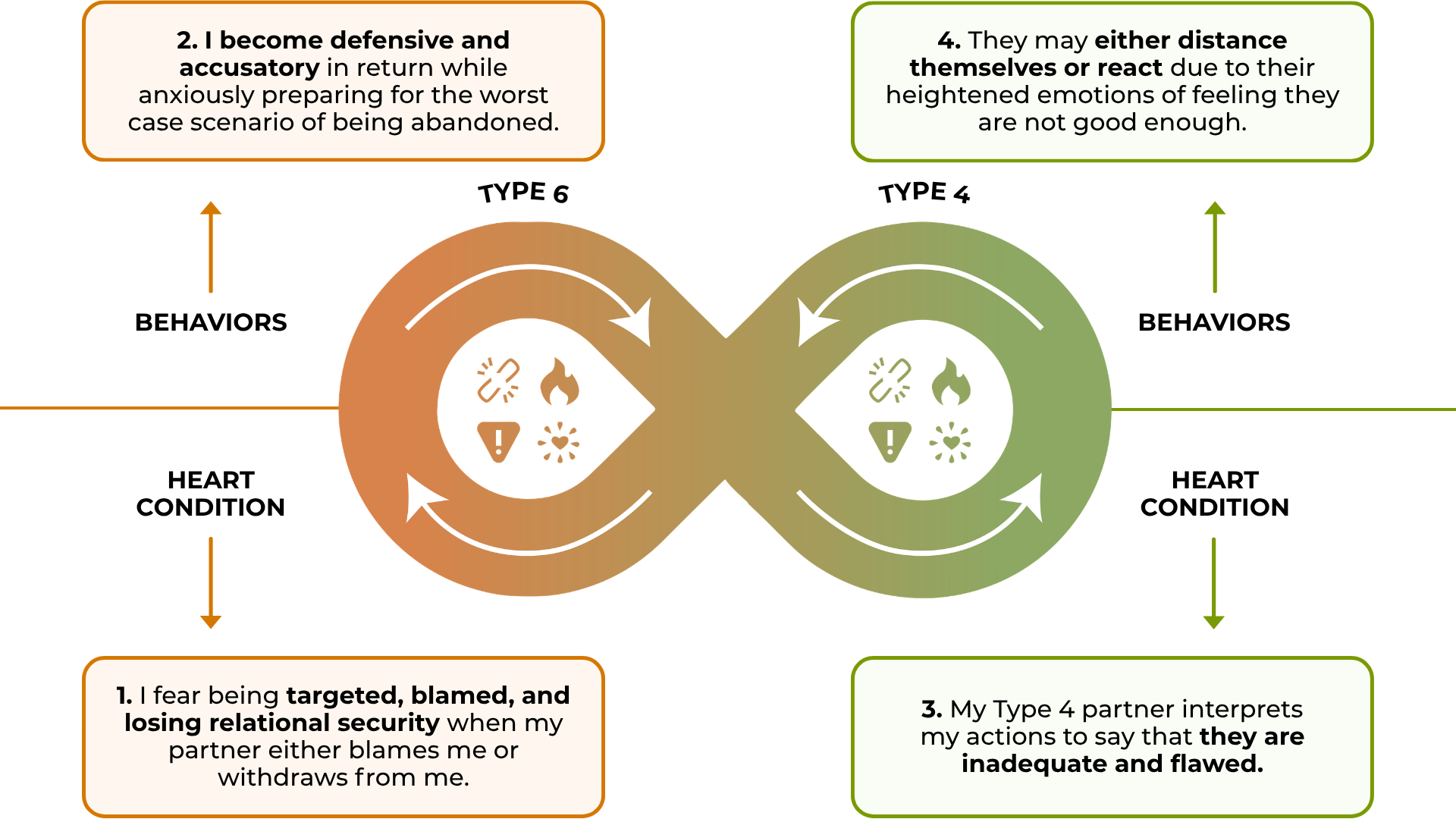 - This cycle can leave one partner feeling burdened with responsibility (the Type 6) and the other feeling unseen or misunderstood (the Type 4).