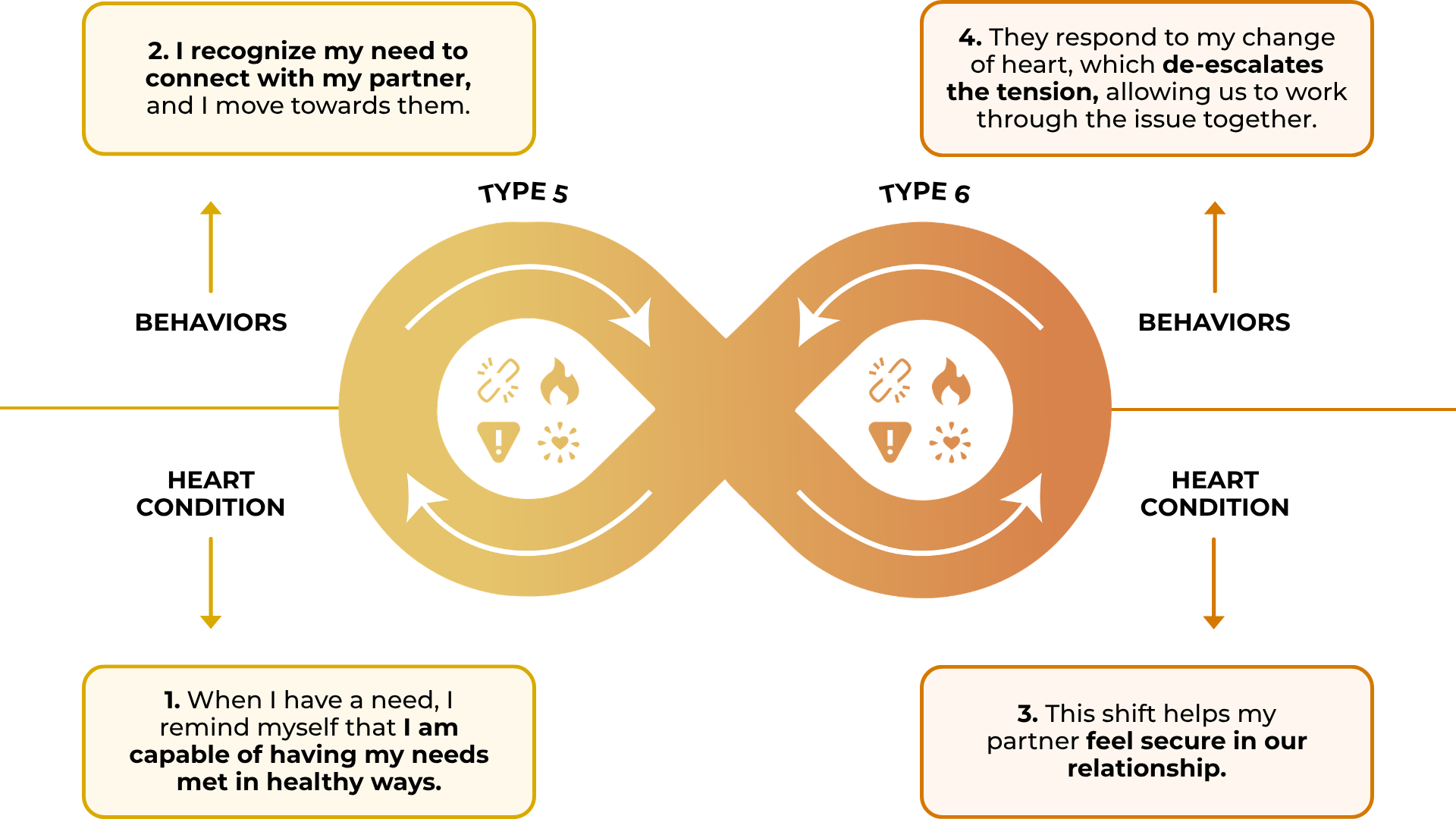 - Stay engaged: Type 5's can remain emotionally available instead of retreating, while Type 6's can resist over-questioning.