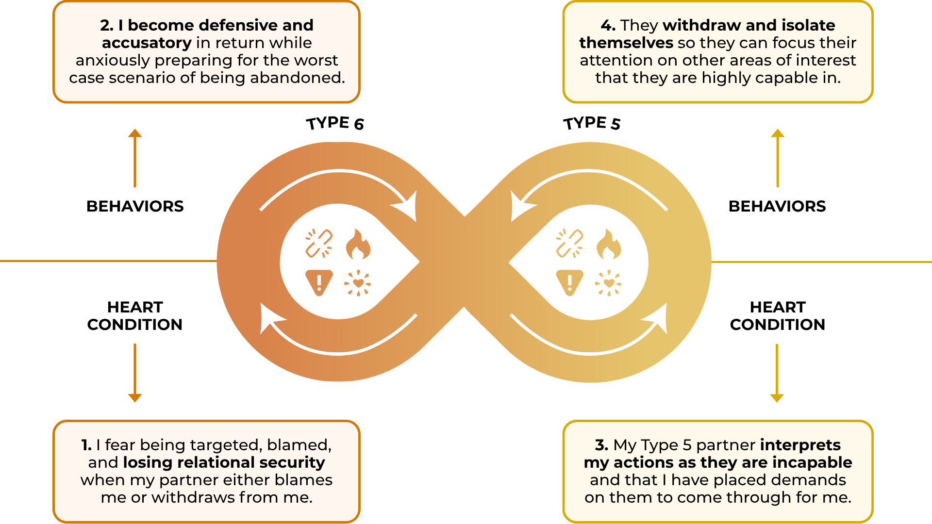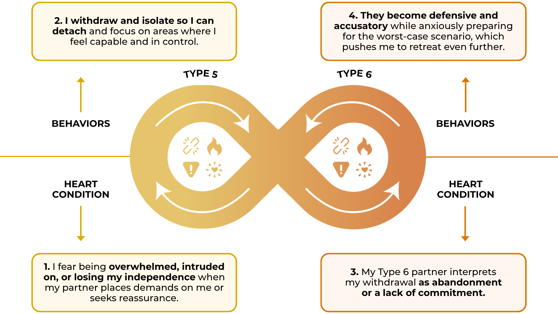 When the Type 6’s anxiety meets the Type 5’s detachment, struggles may unintentionally reinforce each other: