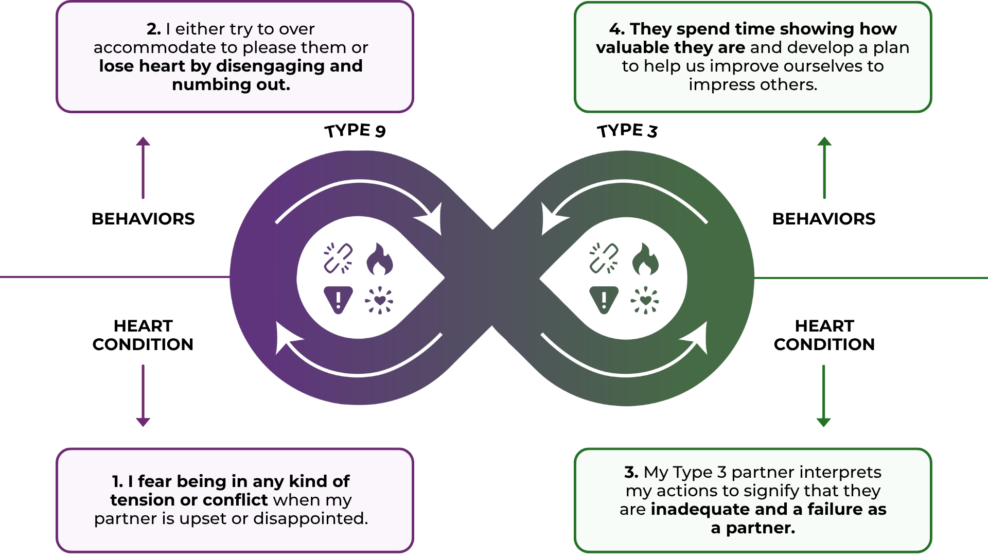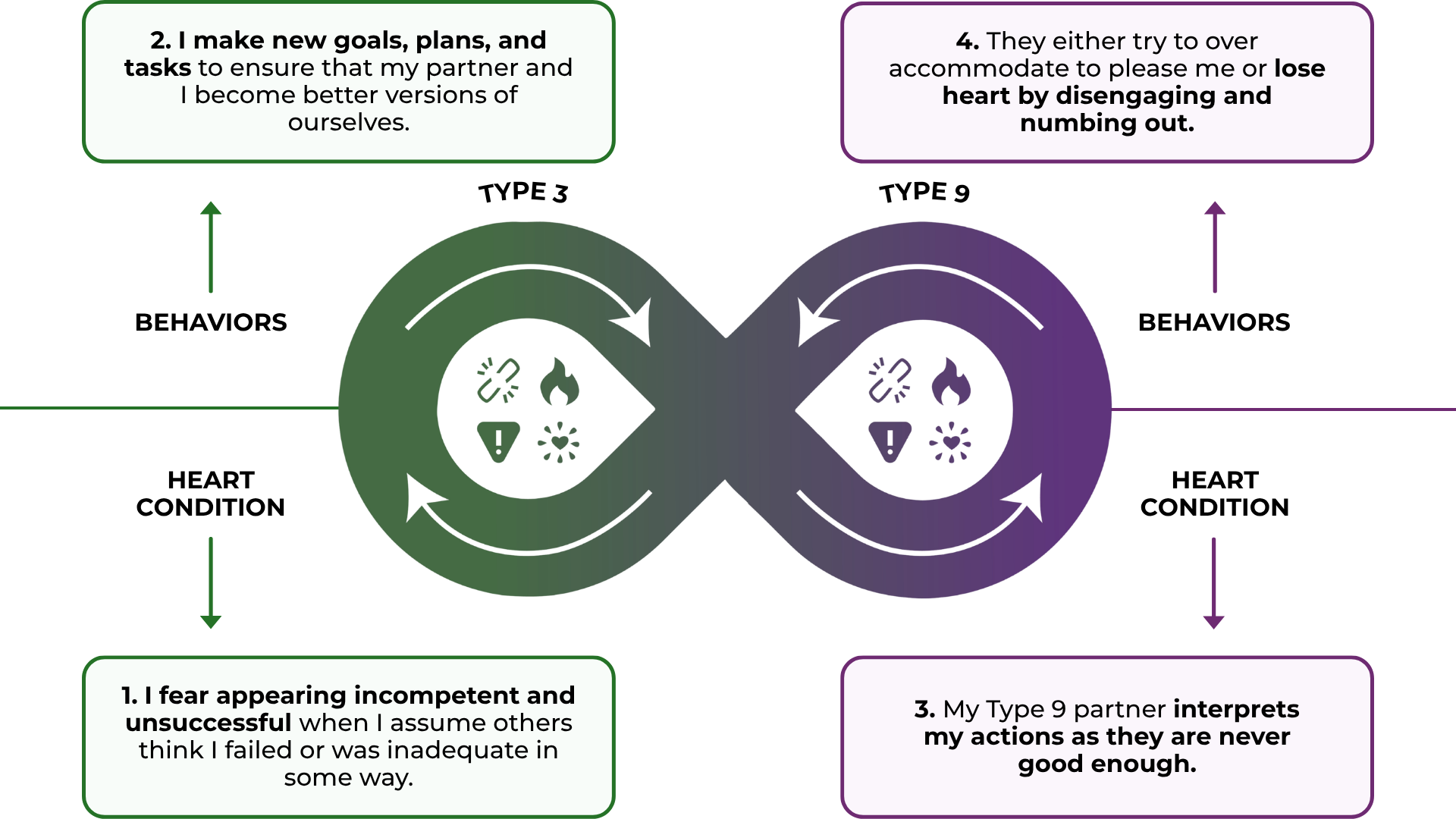 - This can lead to one partner over-functioning (the Type 3) while the other under-functions (the Type 9), creating resentment on both sides.