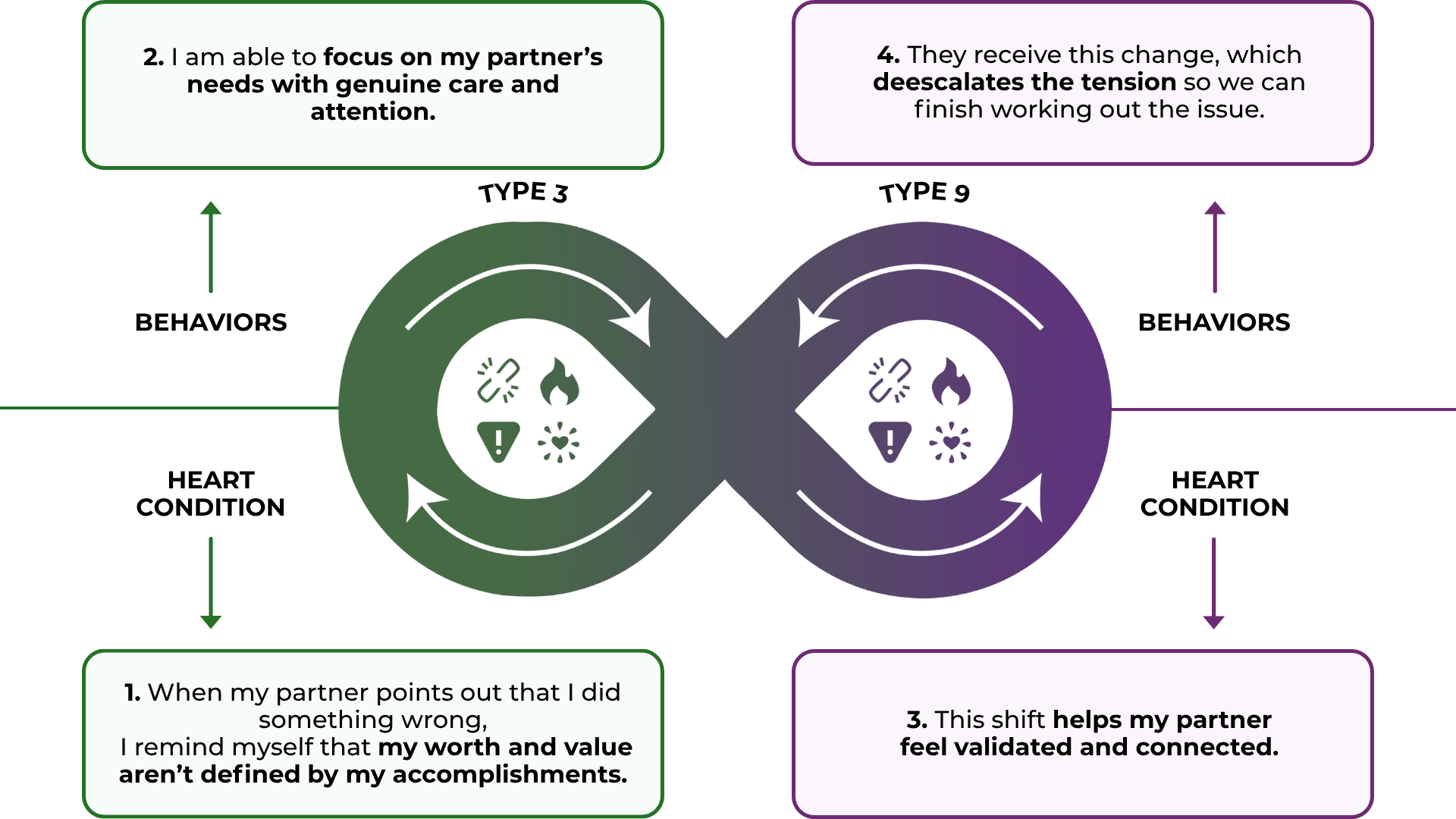 - Speak openly about needs: Type 9's should name what they want, and Type 3's should share vulnerabilities beyond achievements.