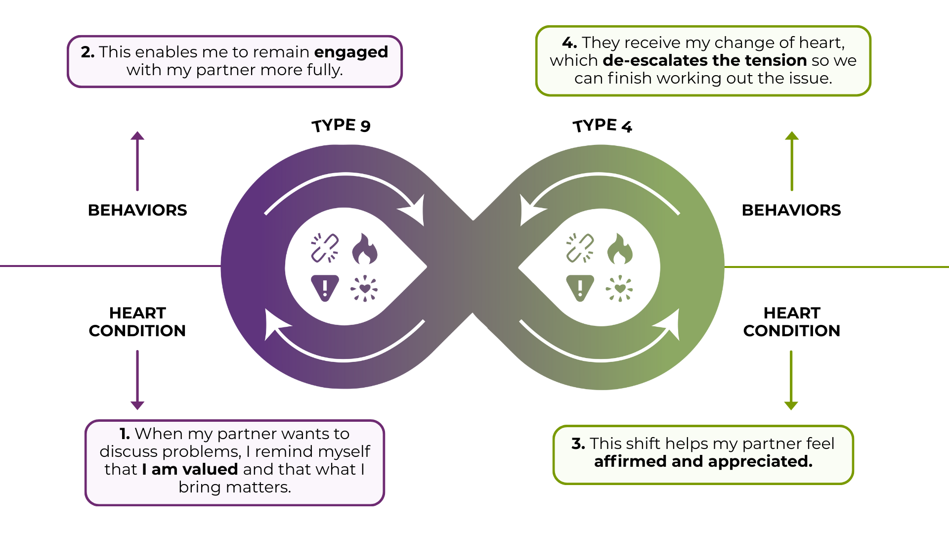 Encourage directness: Type 9's should avoid vague responses, while Type 4's should express their feelings openly without over-dramatizing or withdrawing.