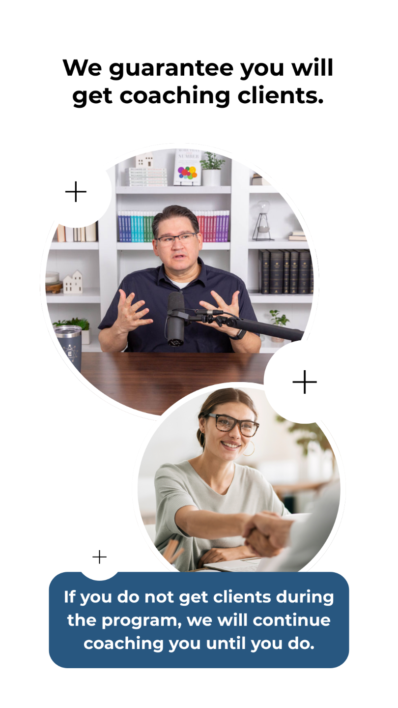 If you complete all sessions and homework but do not get clients during the program, we will continue coaching you until you do.